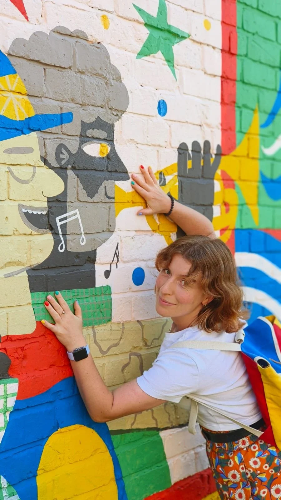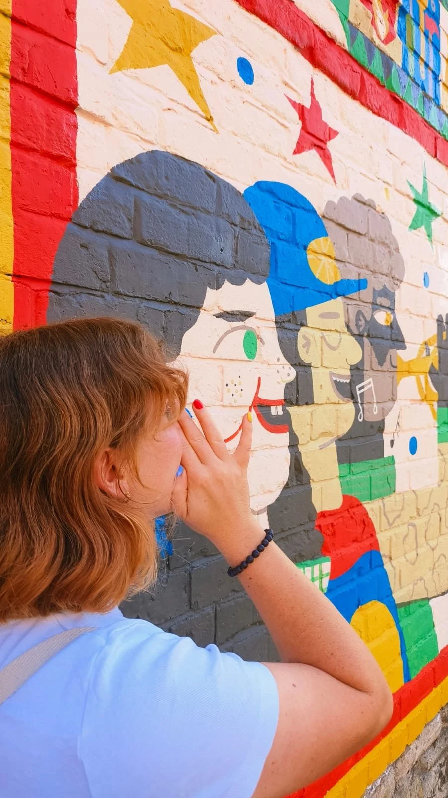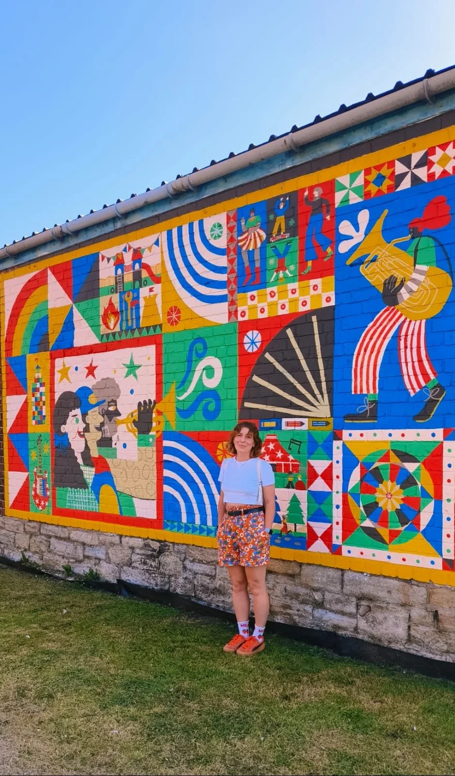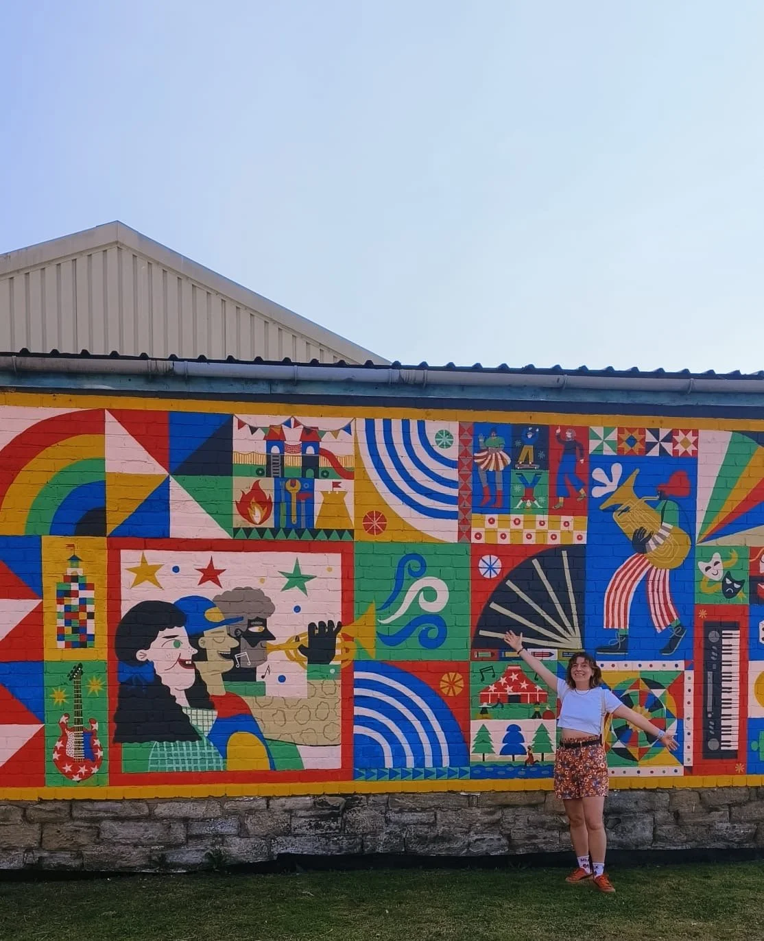 Hand painted mural inspired by the playful nature of Wrecsam people.